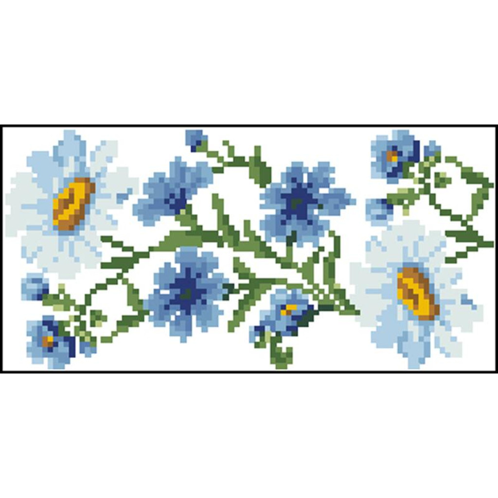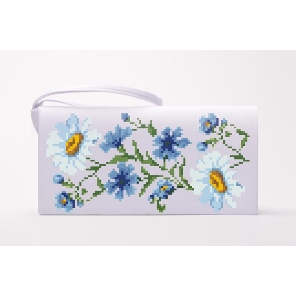 КЛ019лБ1301i Барвиста вишиванка Набір для вишивки друкованим хрестиком - Клатч Ромашки і волошки 21x13 см льон, білий