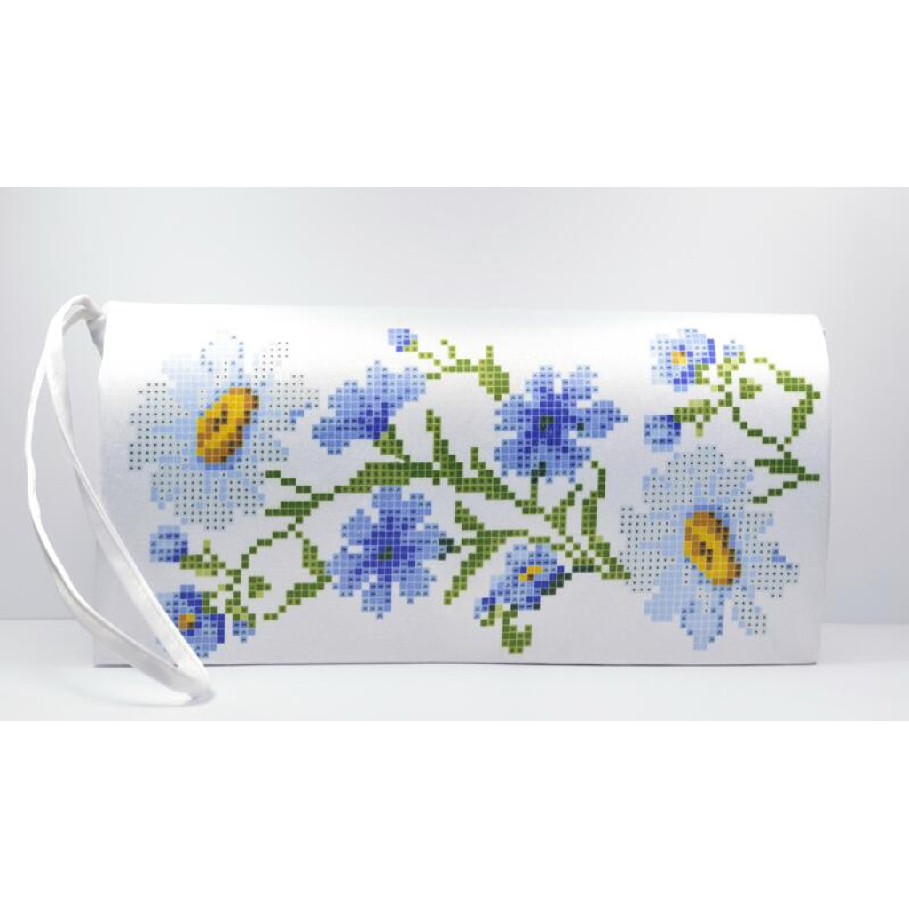 КЛ019шБ1301i Барвиста вишиванка Набір для вишивки друкованим хрестиком - Клатч Ромашки і волошки 21x13 см шовк, білий