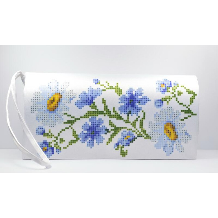 Набір для вишивки нитками пошитого клатча Ромашки і волошки від Барвиста вишиванка призначений для часткової зашивки друкованим хрестиком. Малюнок-схема нанесений безпосередньо на шовкову тканину білого кольору стійкими екологічними фарбами, що не змиваються під час дбайливого прання. Заготовка клатча вже пошита, тому ви одразу працюєте з готовою формою виробу, а вишитий візерунок надає аксесуару виразного та доглянутого вигляду.