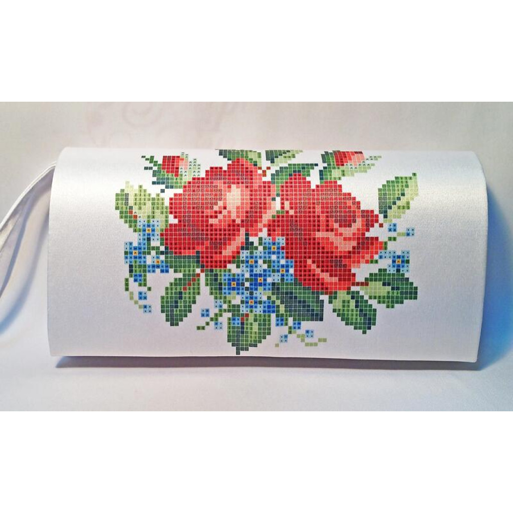 Набір для вишивки нитками пошитого клатча Вишукані троянди, незабудки від Барвиста вишиванка призначений для часткової зашивки друкованим хрестиком. Малюнок-схема нанесений безпосередньо на домоткане полотно білого кольору стійкими екологічними фарбами, що не змиваються під час дбайливого прання. Заготовка клатча вже пошита, тому ви одразу працюєте з готовою формою виробу, а вишитий візерунок надає аксесуару охайного та виразного вигляду.