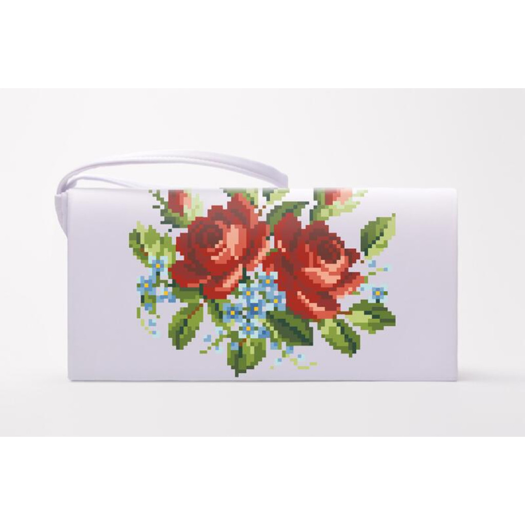 Набір для вишивки нитками пошитого клатча Вишукані троянди, незабудки від Барвиста вишиванка призначений для часткової зашивки друкованим хрестиком. Малюнок-схема нанесений безпосередньо на лляну тканину білого кольору стійкими екологічними фарбами, що не змиваються під час дбайливого прання. Заготовка клатча вже пошита, тому ви одразу працюєте з готовою формою виробу, а вишитий візерунок надає аксесуару охайного та виразного вигляду.