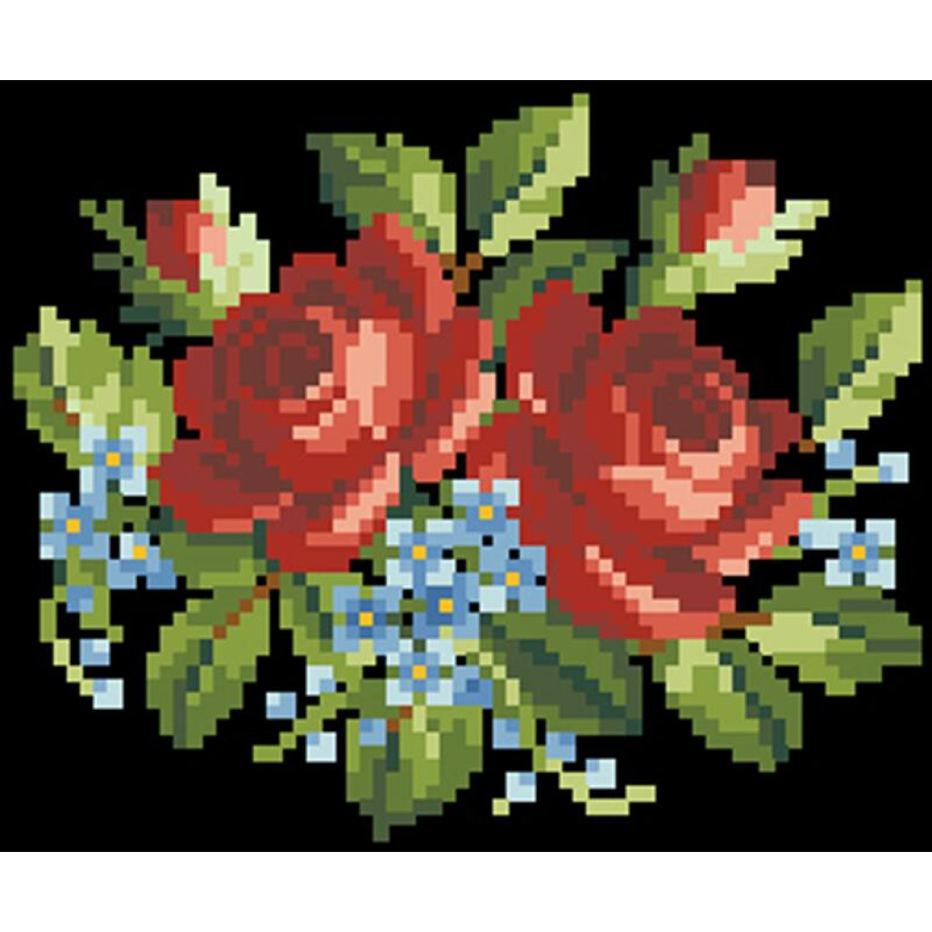 КЛ020лЧ1301i Барвиста вишиванка Набір для вишивки друкованим хрестиком - Клатч Вишукані троянди, незабудки 21x13 см льон, чорний
