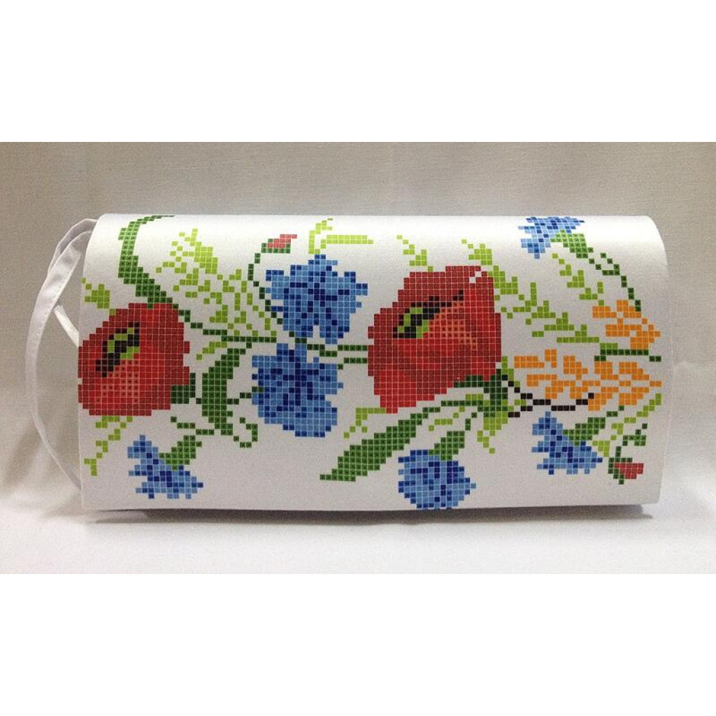 Набір для вишивки нитками пошитого клатча Польові квіти від Барвиста вишиванка призначений для часткової зашивки друкованим хрестиком. Малюнок-схема нанесений безпосередньо на домоткане полотно білого кольору стійкими екологічними фарбами, що не змиваються під час дбайливого прання. Заготовка клатча вже пошита, тому ви одразу працюєте з готовою формою виробу, а вишитий візерунок надає аксесуару охайного та виразного вигляду.