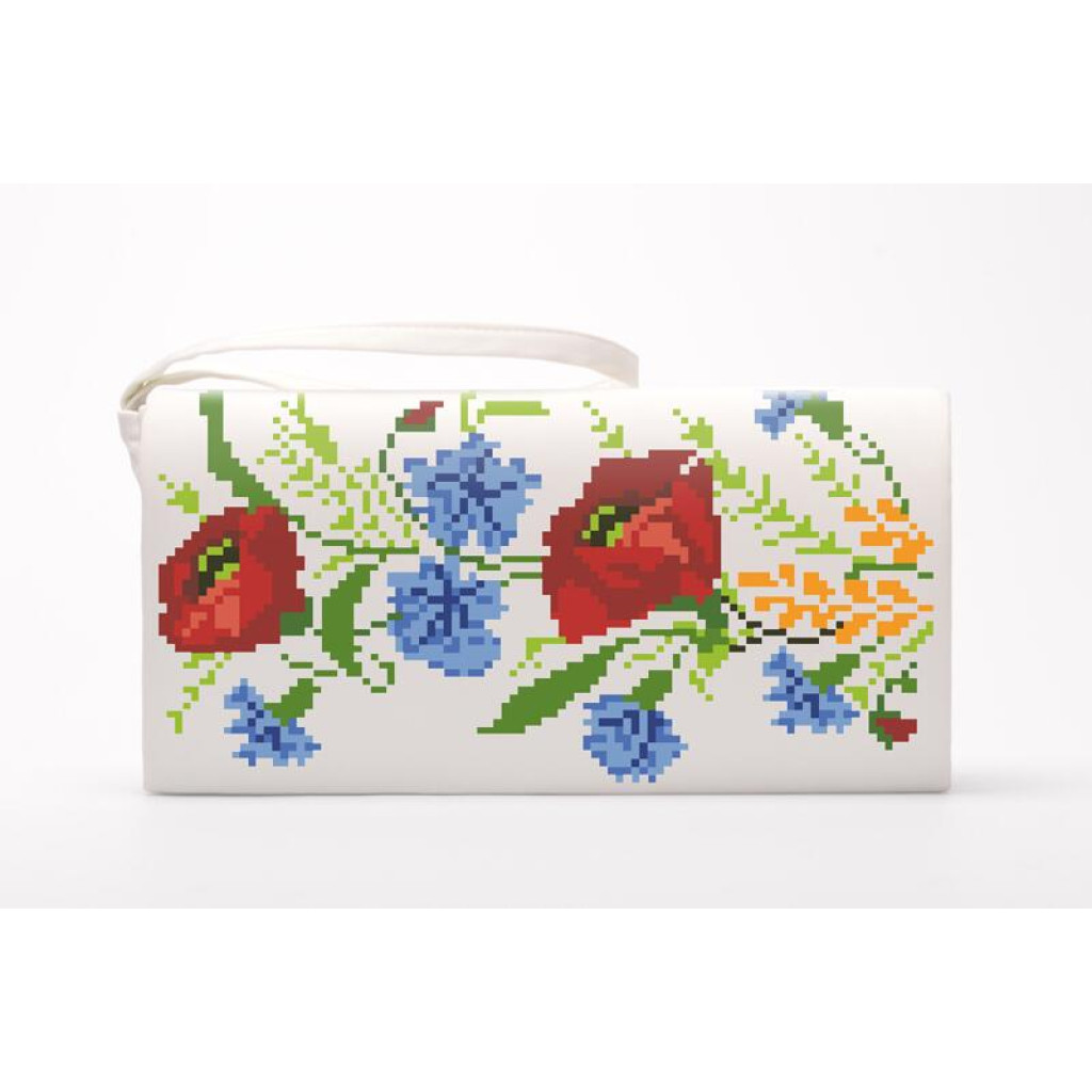 Набір для вишивки нитками пошитого клатча Польові квіти від Барвиста вишиванка призначений для часткової зашивки друкованим хрестиком. Малюнок-схема нанесений безпосередньо на домоткане полотно бежевого кольору стійкими екологічними фарбами, що не змиваються під час дбайливого прання. Заготовка клатча вже пошита, тому ви одразу працюєте з готовою формою виробу, а вишитий візерунок надає аксесуару охайного та виразного вигляду.