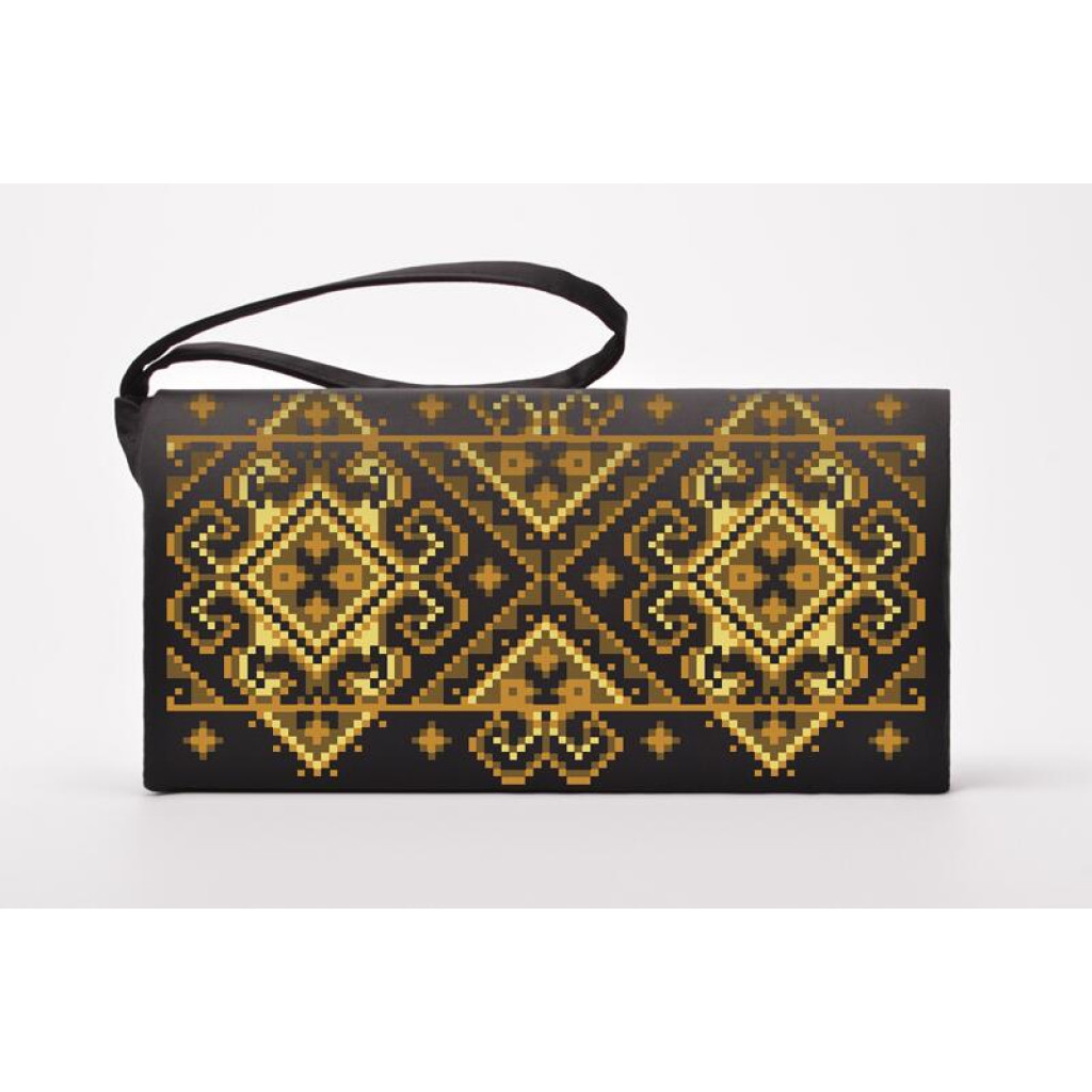 КЛ033дЧ1301i Барвиста вишиванка Набір для вишивки друкованим хрестиком - Клатч Кучерява безмежність 21x13 см домоткане полотно, чорний