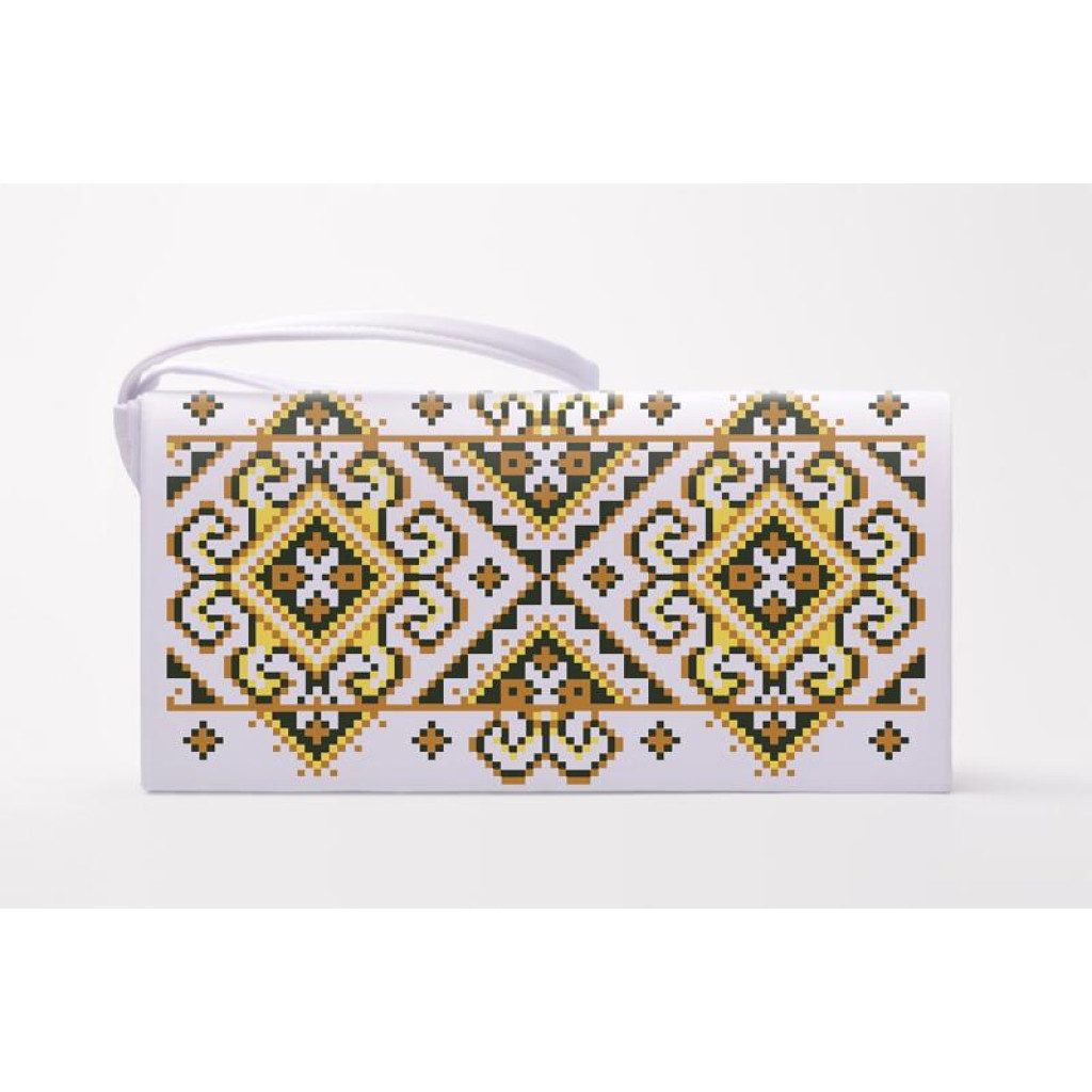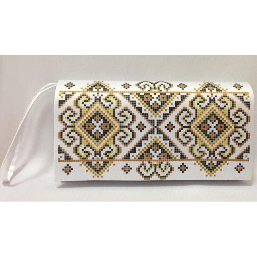 КЛ033лБ1301i Барвиста вишиванка Набір для вишивки друкованим хрестиком - Клатч Кучерява безмежність 21x13 см льон, білий