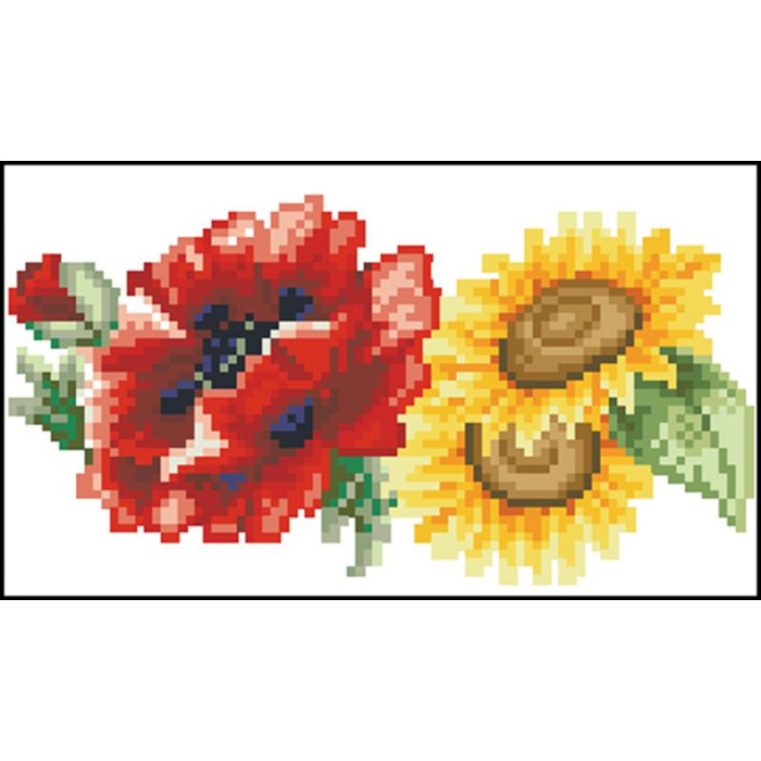 КЛ040шБ1301i Барвиста вишиванка Набір для вишивки друкованим хрестиком - Клатч Маки і соняхи 21x13 см шовк, білий