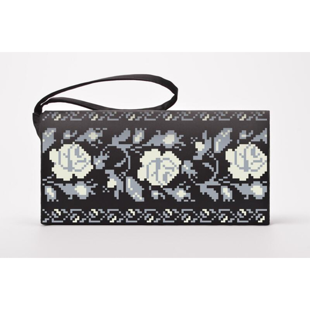 Набір для вишивки нитками пошитого клатча Весільні пари від Барвиста вишиванка призначений для часткової зашивки друкованим хрестиком. Малюнок-схема нанесений безпосередньо на домоткане полотно чорного кольору стійкими екологічними фарбами, що не змиваються під час дбайливого прання. Заготовка клатча вже пошита, тому ви одразу працюєте з готовою формою виробу, а вишитий візерунок надає аксесуару охайного та виразного вигляду.