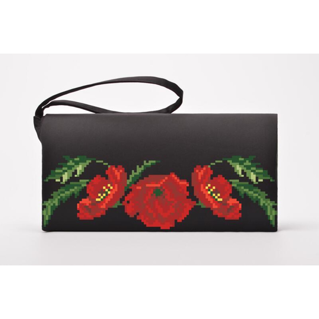 КЛ050шЧ1301i Барвиста вишиванка Набір для вишивки друкованим хрестиком - Клатч Тендітні маки 21x13 см шовк, чорний
