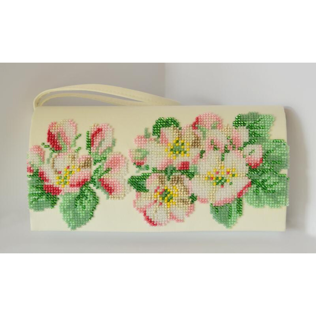 КЛ052кБ1301i Барвиста вишиванка Набір для вишивки друкованим хрестиком - Клатч Яблуневий цвіт 21x13 см атлас, білий