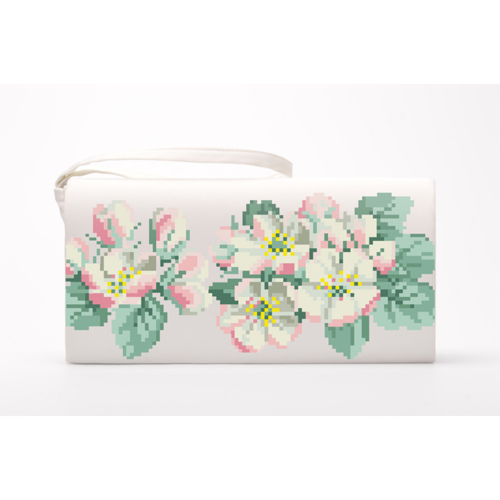 Набір для вишивки нитками пошитого клатча Яблуневий цвіт від Барвиста вишиванка призначений для часткової зашивки друкованим хрестиком. Малюнок-схема нанесений безпосередньо на шовкову тканину бежевого кольору стійкими екологічними фарбами, що не змиваються під час дбайливого прання. Заготовка клатча вже пошита, тому ви одразу працюєте з готовою формою виробу, а вишитий візерунок надає аксесуару виразного та доглянутого вигляду.