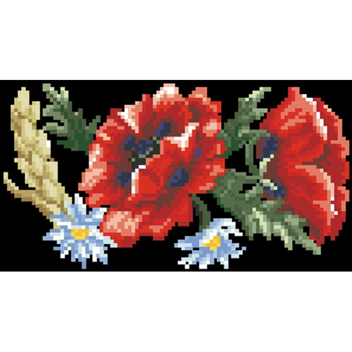 КЛ054шЧ1301i Барвиста вишиванка Набір для вишивки друкованим хрестиком - Клатч Червоні маки, ромашки, колоски 21x13 см шовк, чорний