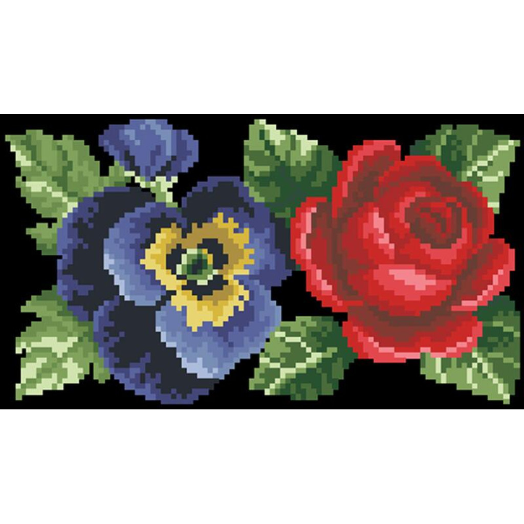 КЛ056лЧ1301i Барвиста вишиванка Набір для вишивки друкованим хрестиком - Клатч Троянди, братки, мальви 21x13 см льон, чорний