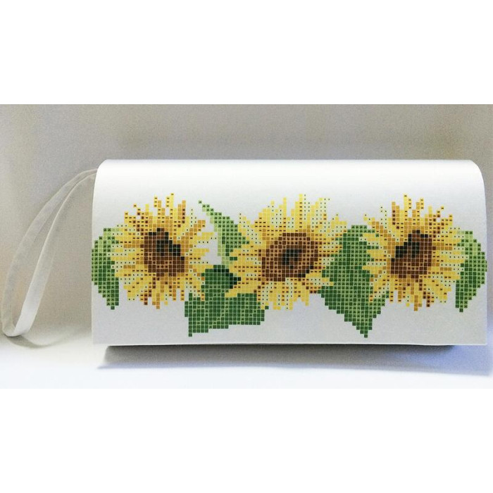 КЛ084кБ1301i Барвиста вишиванка Набір для вишивки друкованим хрестиком - Клатч Соняшники 21x13 см атлас, білий
