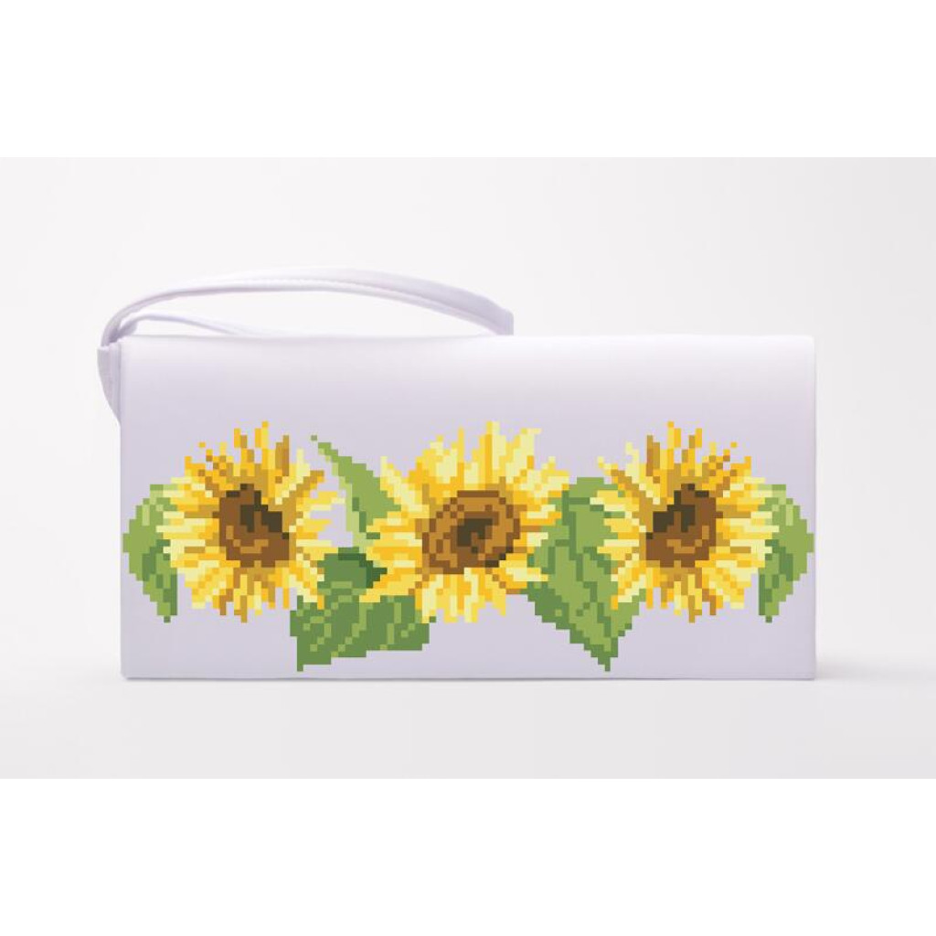 КЛ084лБ1301i Барвиста вишиванка Набір для вишивки друкованим хрестиком - Клатч Соняшники 21x13 см льон, білий