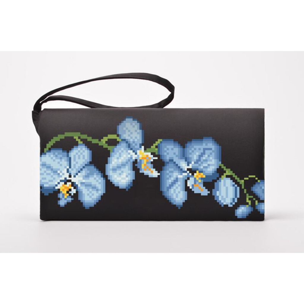 Набір для вишивки нитками пошитого клатча Блакитні орхідеї від Барвиста вишиванка призначений для часткової зашивки друкованим хрестиком. Малюнок-схема нанесений безпосередньо на домоткане полотно чорного кольору стійкими екологічними фарбами, що не змиваються під час дбайливого прання. Заготовка клатча вже пошита, тому ви одразу працюєте з готовою формою виробу, а вишитий візерунок надає аксесуару охайного та виразного вигляду.