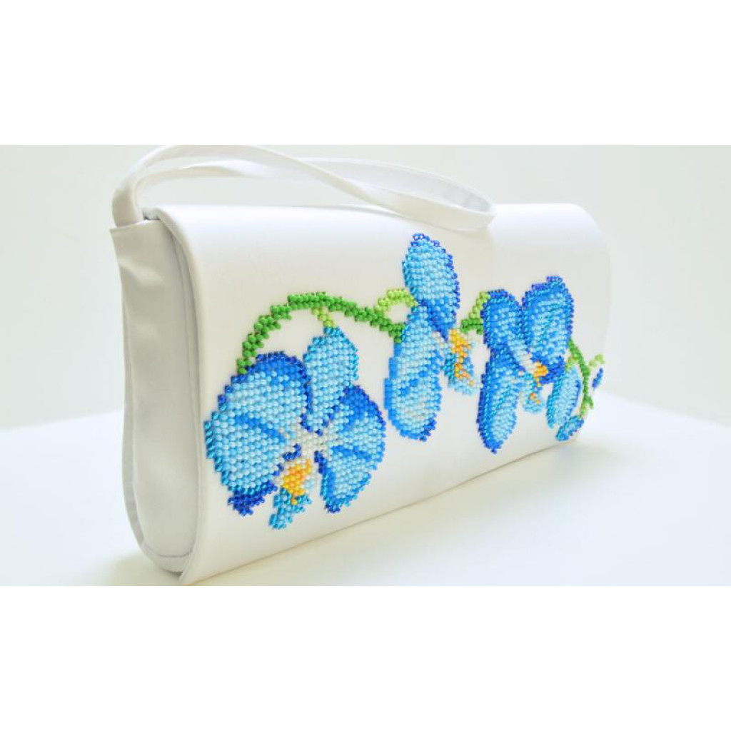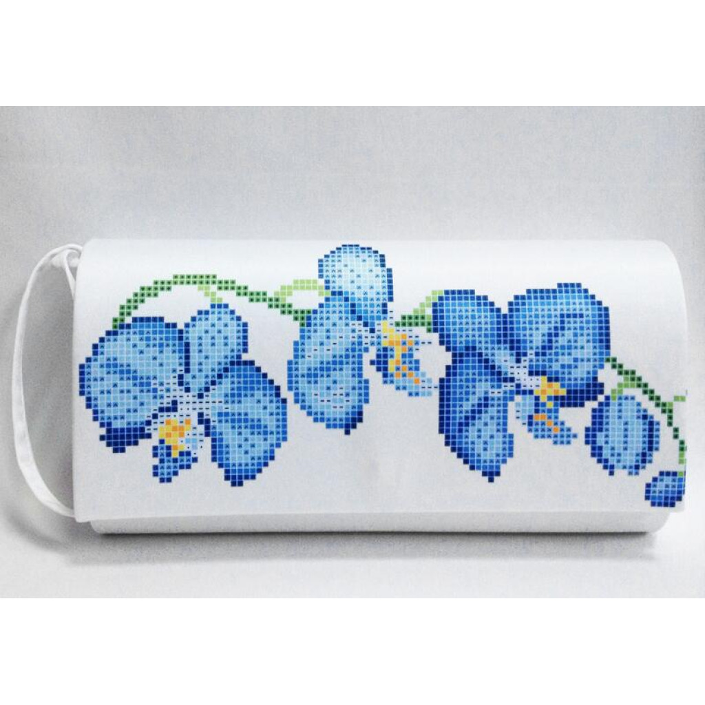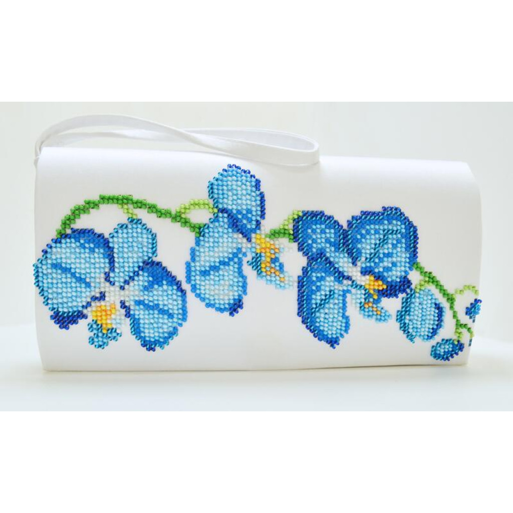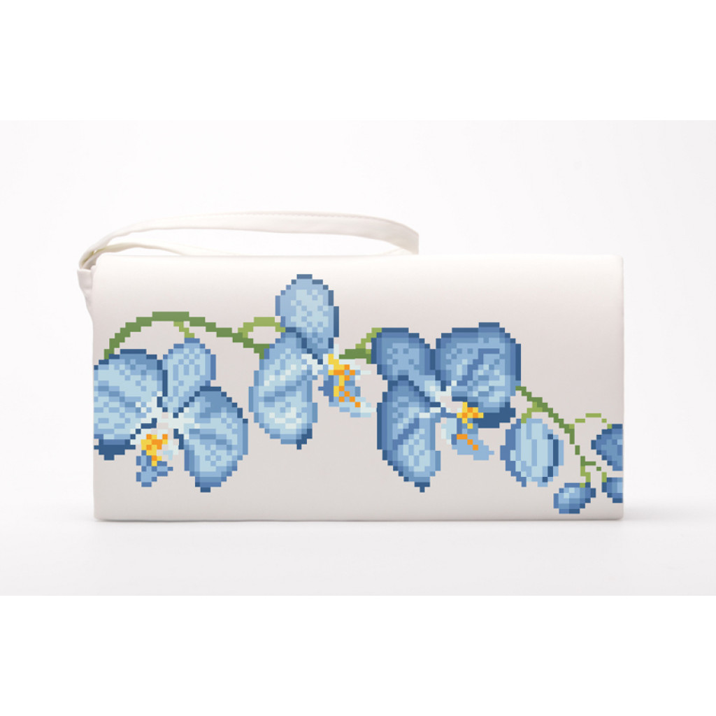 КЛ085кБ1301i Барвиста вишиванка Набір для вишивки друкованим хрестиком - Клатч Блакитні орхідеї 21x13 см атлас, білий