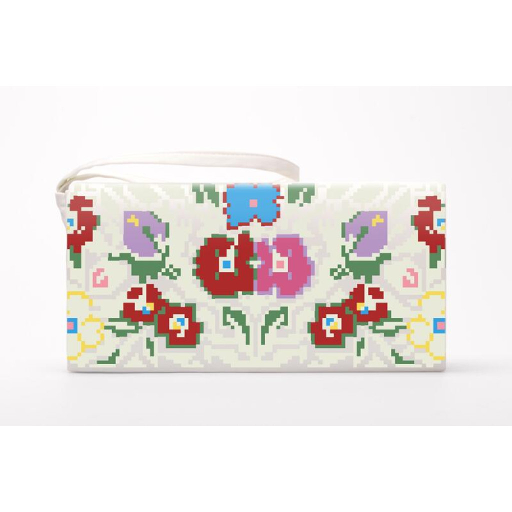 Набір для вишивки нитками пошитого клатча Борщівська сучасна від Барвиста вишиванка призначений для часткової зашивки друкованим хрестиком. Малюнок-схема нанесений безпосередньо на домоткане полотно білого кольору стійкими екологічними фарбами, що не змиваються під час дбайливого прання. Заготовка клатча вже пошита, тому ви одразу працюєте з готовою формою виробу, а вишитий візерунок надає аксесуару охайного та виразного вигляду.