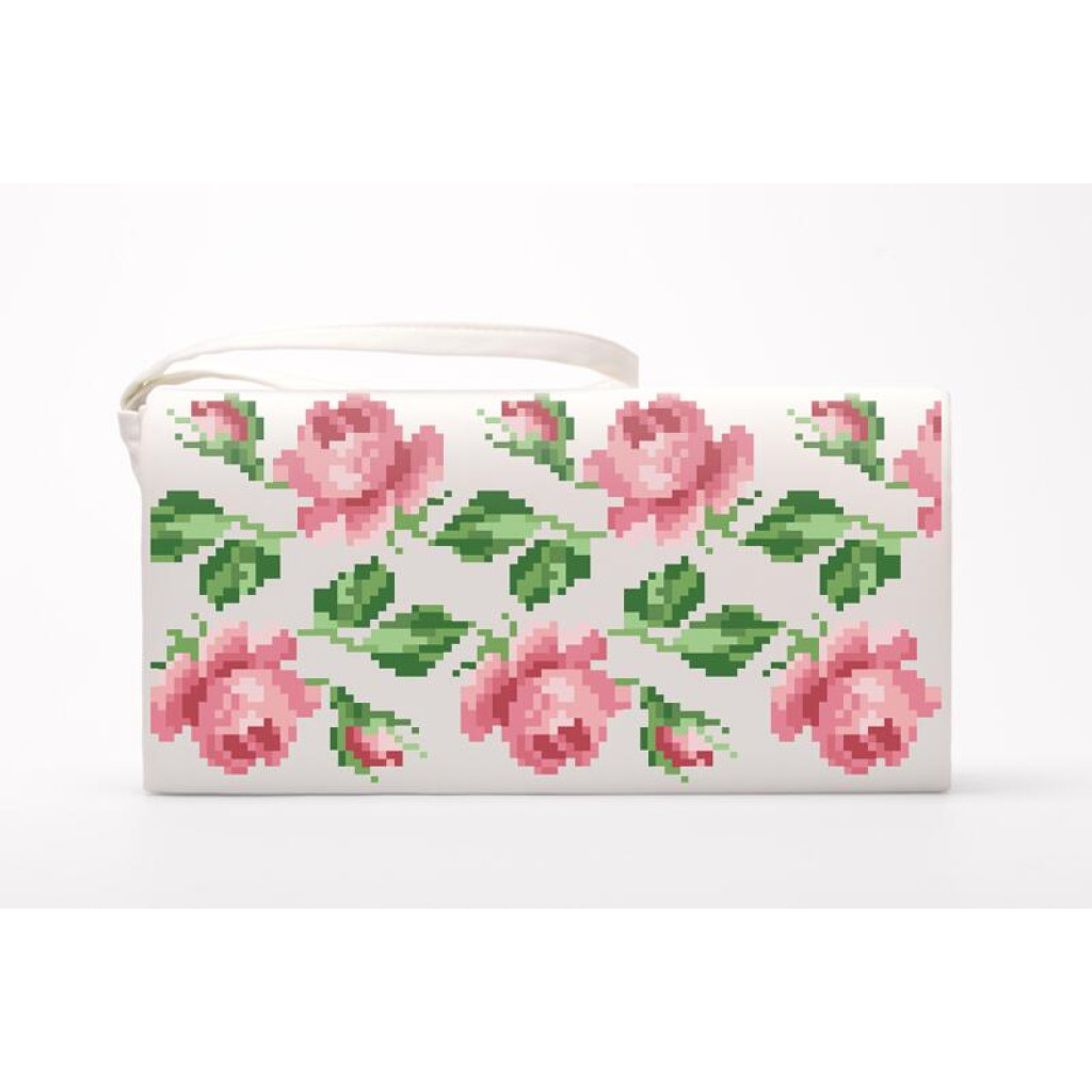 КЛ168кМ1301i Барвиста вишиванка Набір для вишивки друкованим хрестиком - Клатч Ніжні троянди 21x13 см атлас, бежевий