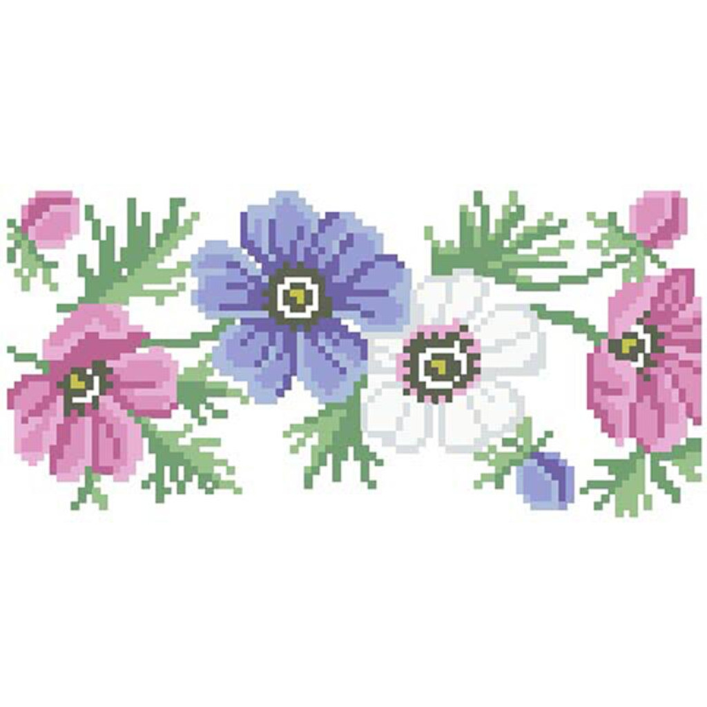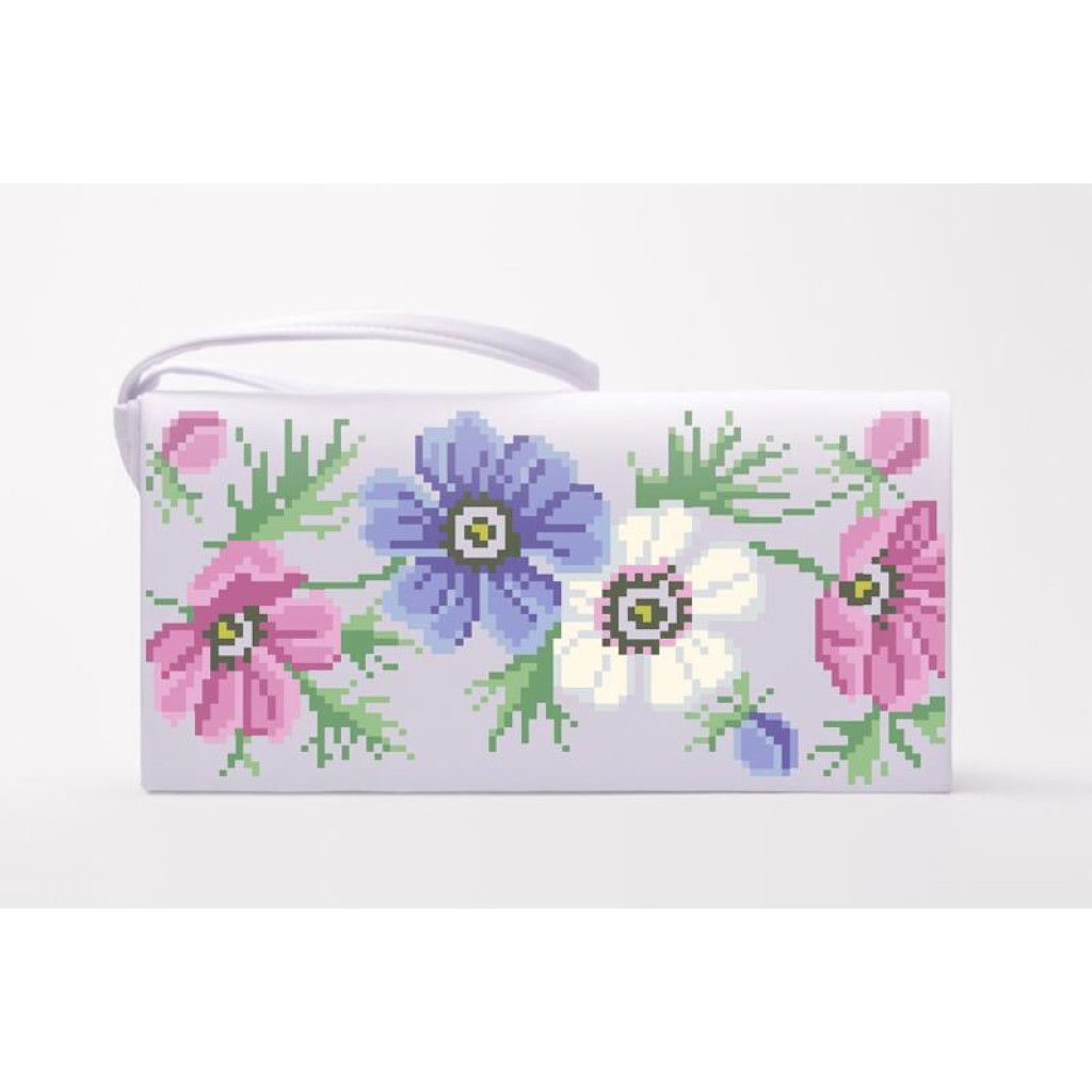 КЛ170лБ1301i Барвиста вишиванка Набір для вишивки друкованим хрестиком - Клатч Анемони 21x13 см льон, білий