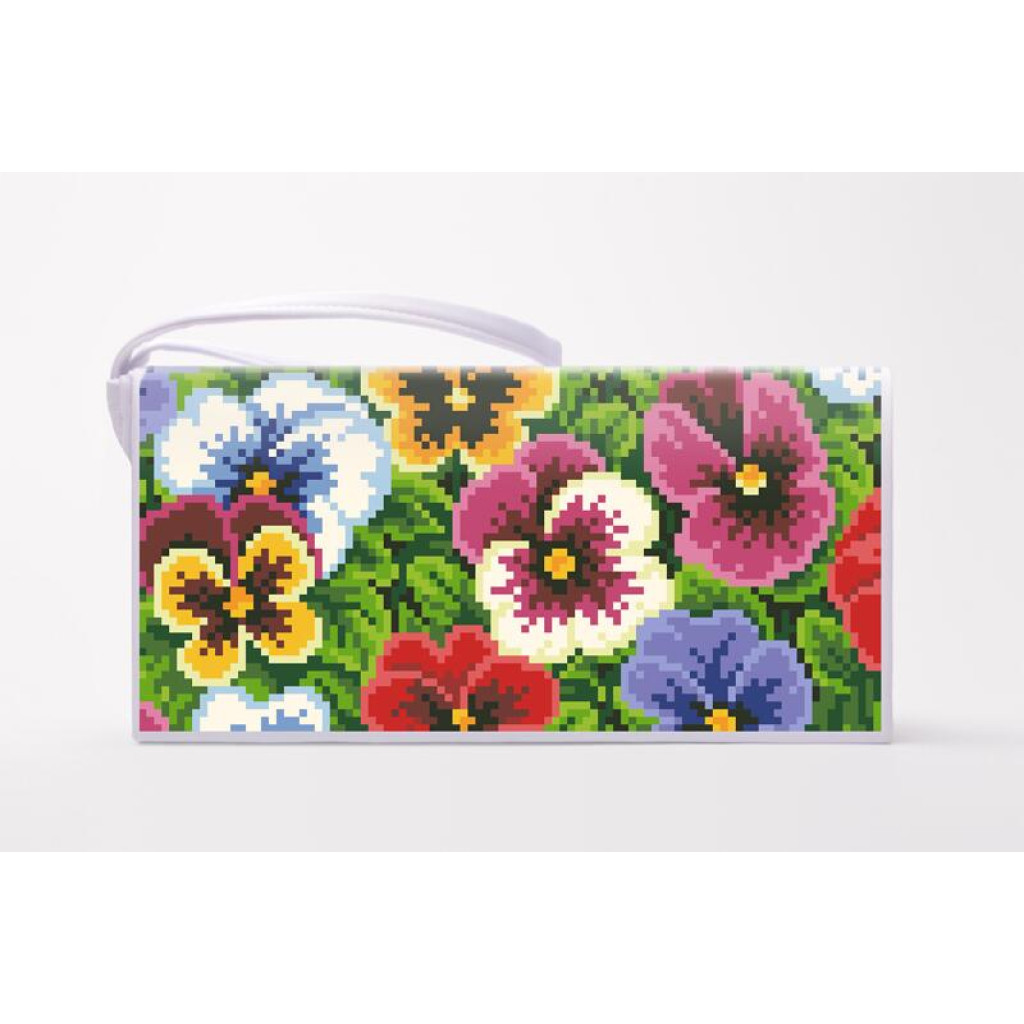 Набір для вишивки нитками пошитого клатча Мальовничі братки від Барвиста вишиванка призначений для часткової зашивки друкованим хрестиком. Малюнок-схема нанесений безпосередньо на лляну тканину білого кольору стійкими екологічними фарбами, що не змиваються під час дбайливого прання. Заготовка клатча вже пошита, тому ви одразу працюєте з готовою формою виробу, а вишитий візерунок надає аксесуару охайного та виразного вигляду.
