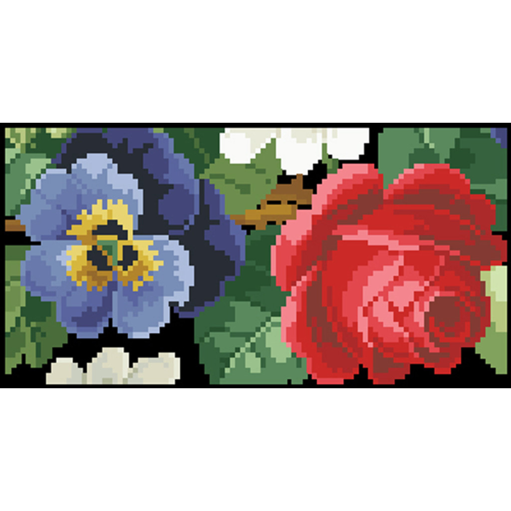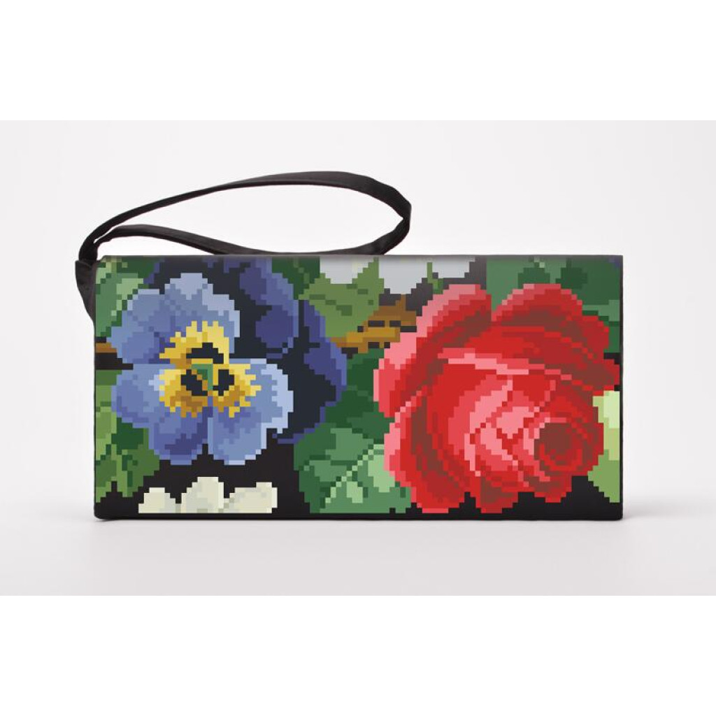КЛ174кЧ1301i Барвиста вишиванка Набір для вишивки друкованим хрестиком - Клатч Троянди, братки, петунії, ромашки 21x13 см атлас, чорний
