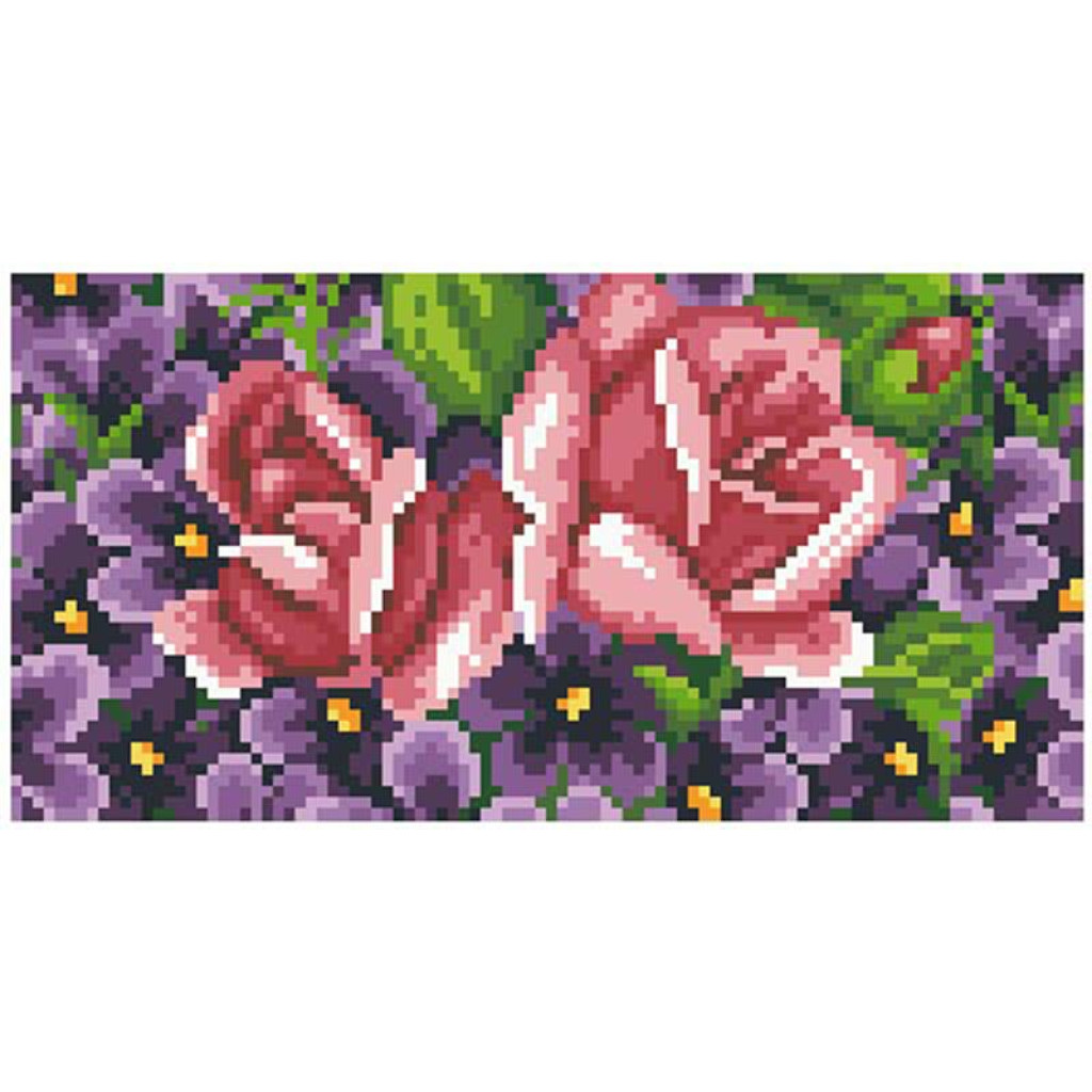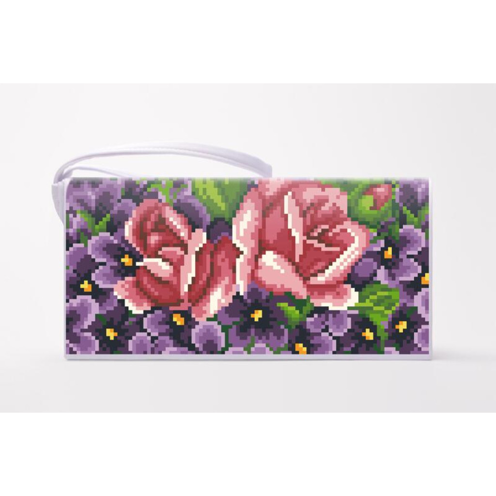 КЛ179лБ1301i Барвиста вишиванка Набір для вишивки друкованим хрестиком - Клатч Фіалки і троянди 21x13 см льон, білий