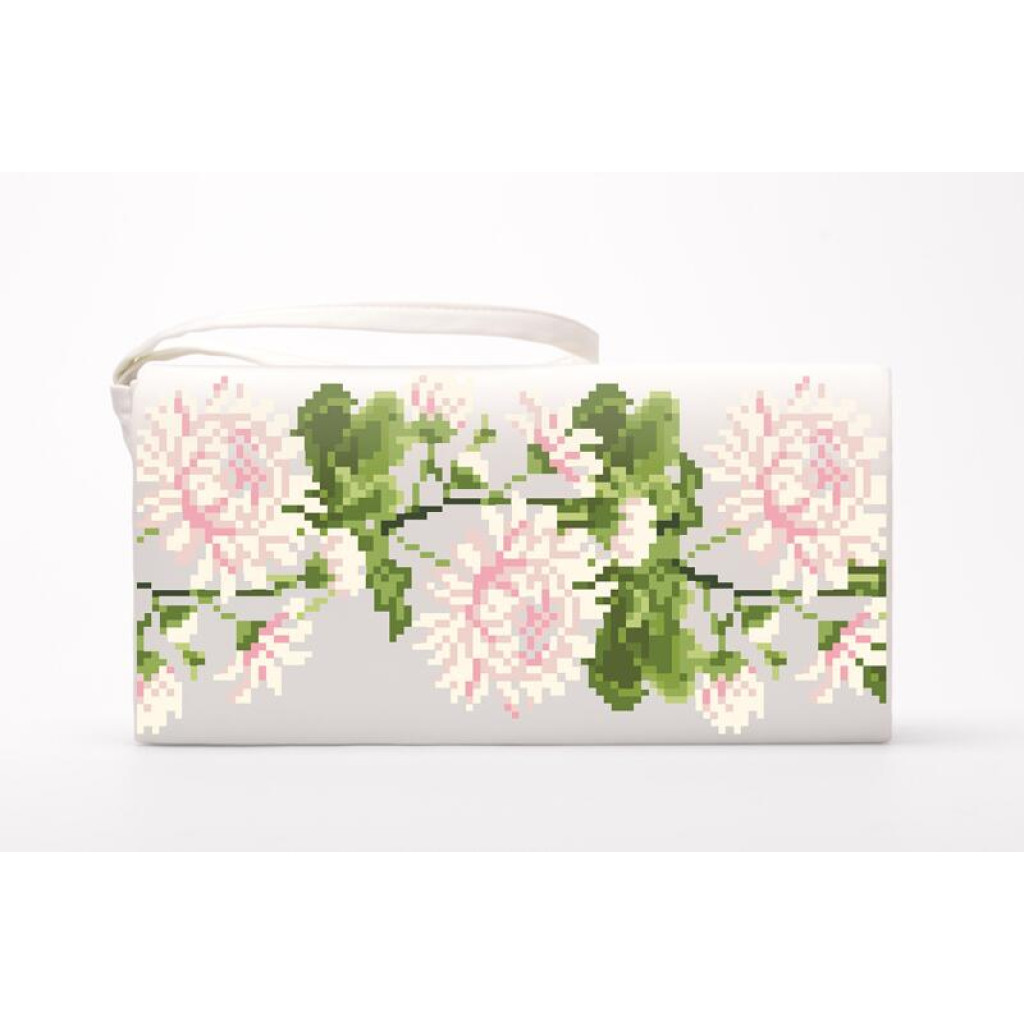 КЛ186шМ1301i Барвиста вишиванка Набір для вишивки друкованим хрестиком - Клатч Ніжні хризантеми 21x13 см шовк, бежевий