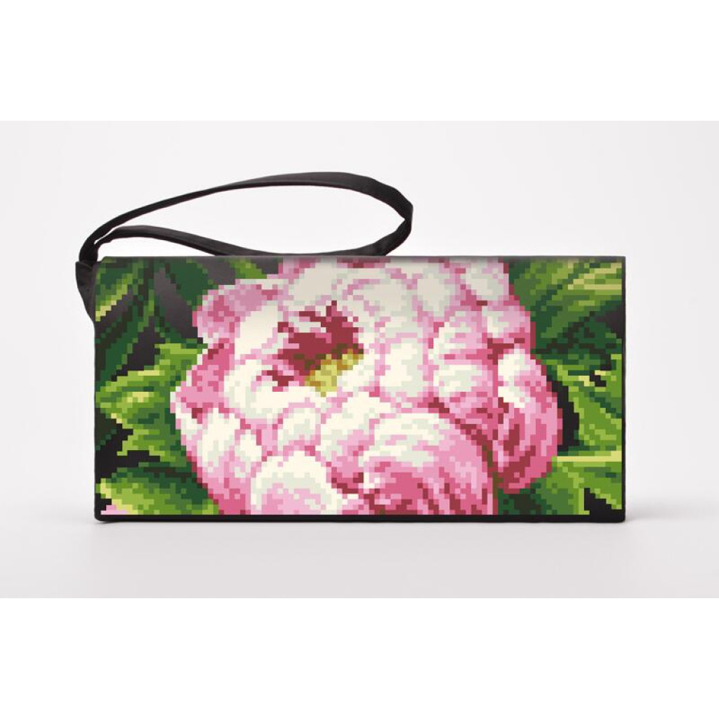 Набір для вишивки нитками пошитого клатча Пишні піони від Барвиста вишиванка призначений для часткової зашивки друкованим хрестиком. Малюнок-схема нанесений безпосередньо на домоткане полотно чорного кольору стійкими екологічними фарбами, що не змиваються під час дбайливого прання. Заготовка клатча вже пошита, тому ви одразу працюєте з готовою формою виробу, а вишитий візерунок надає аксесуару охайного та виразного вигляду.