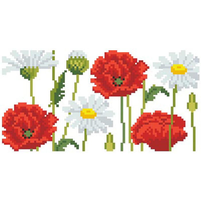 КЛ189кБ1301i Барвиста вишиванка Набір для вишивки друкованим хрестиком - Клатч Ромашки і маки 21x13 см атлас, білий