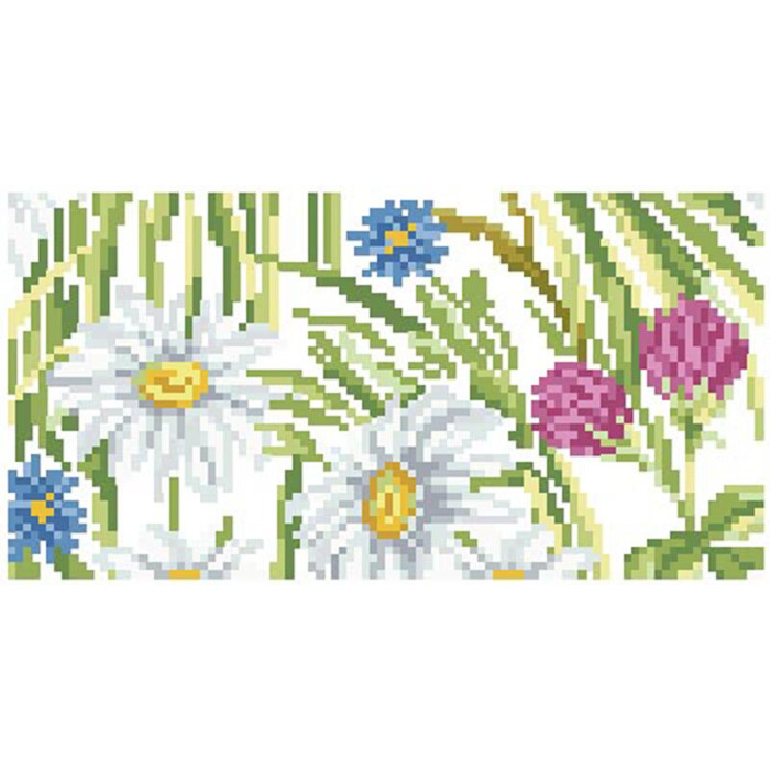 КЛ192кБ1301i Барвиста вишиванка Набір для вишивки друкованим хрестиком - Клатч Ромашки, волошки, дзвіночки 21x13 см атлас, білий