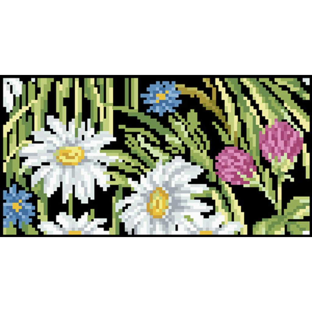 КЛ192кЧ1301i Барвиста вишиванка Набір для вишивки друкованим хрестиком - Клатч Ромашки, волошки, дзвіночки 21x13 см атлас, чорний