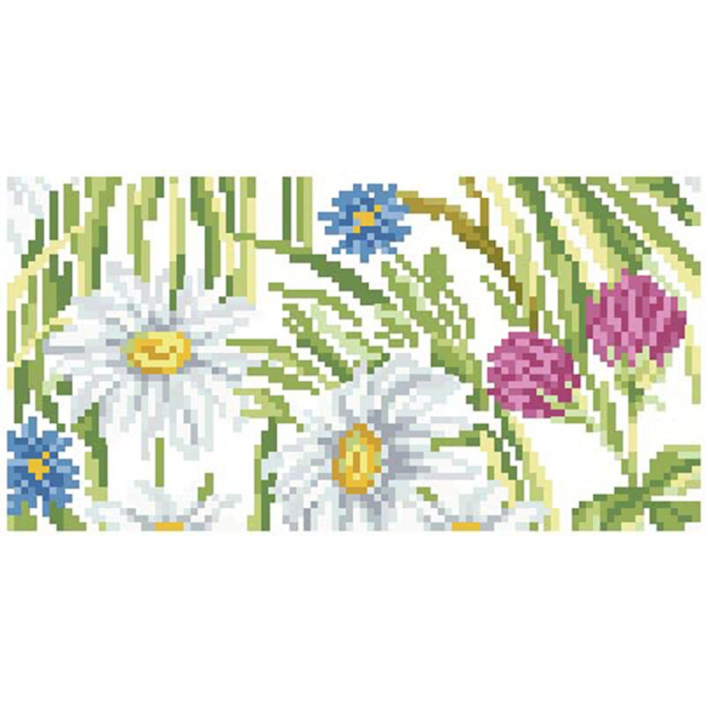 КЛ192лБ1301i Барвиста вишиванка Набір для вишивки друкованим хрестиком - Клатч Ромашки, волошки, дзвіночки 21x13 см льон, білий
