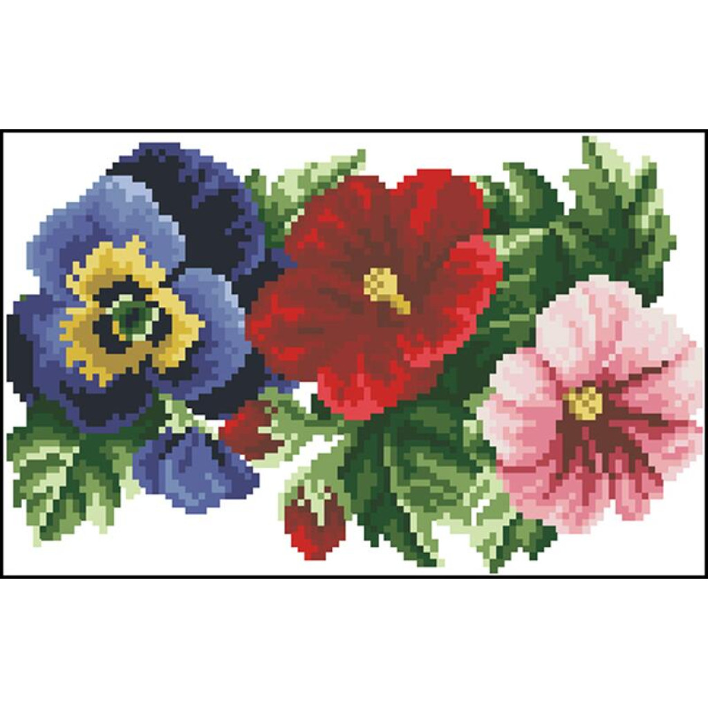 КЛ351пБ1301i Барвиста вишиванка Набір для вишивки друкованим хрестиком - Клатч Мальви, троянди, братки 21x13 см габардин, білий