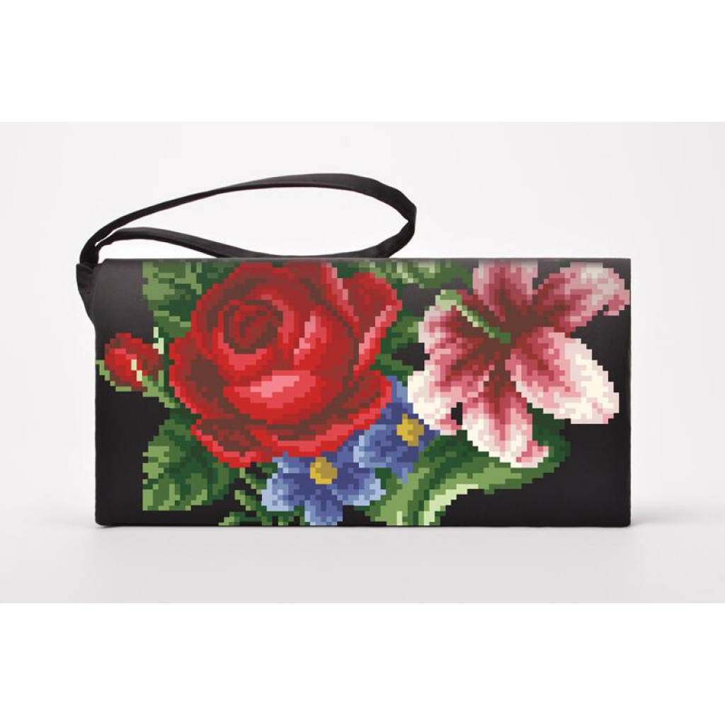 КЛ361лЧ1301i Барвиста вишиванка Набір для вишивки - Клатч Лілеї, троянди, незабудки 21x13 см льон, чорний