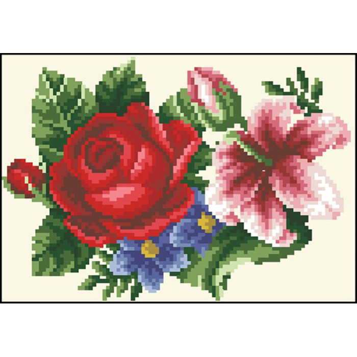 КЛ361лМ1301i Барвиста вишиванка Набір для вишивки друкованим хрестиком - Клатч Лілеї, троянди, незабудки 21x13 см льон, бежевий