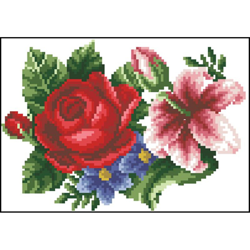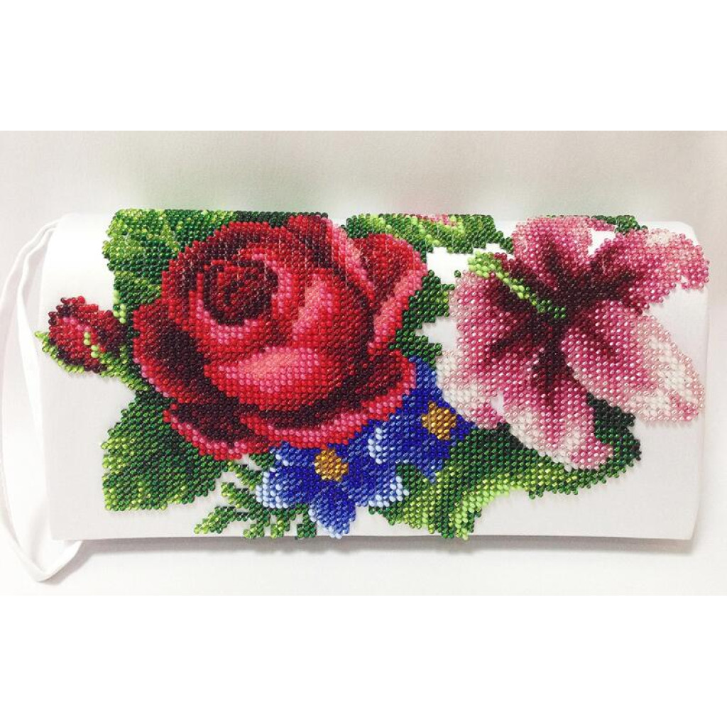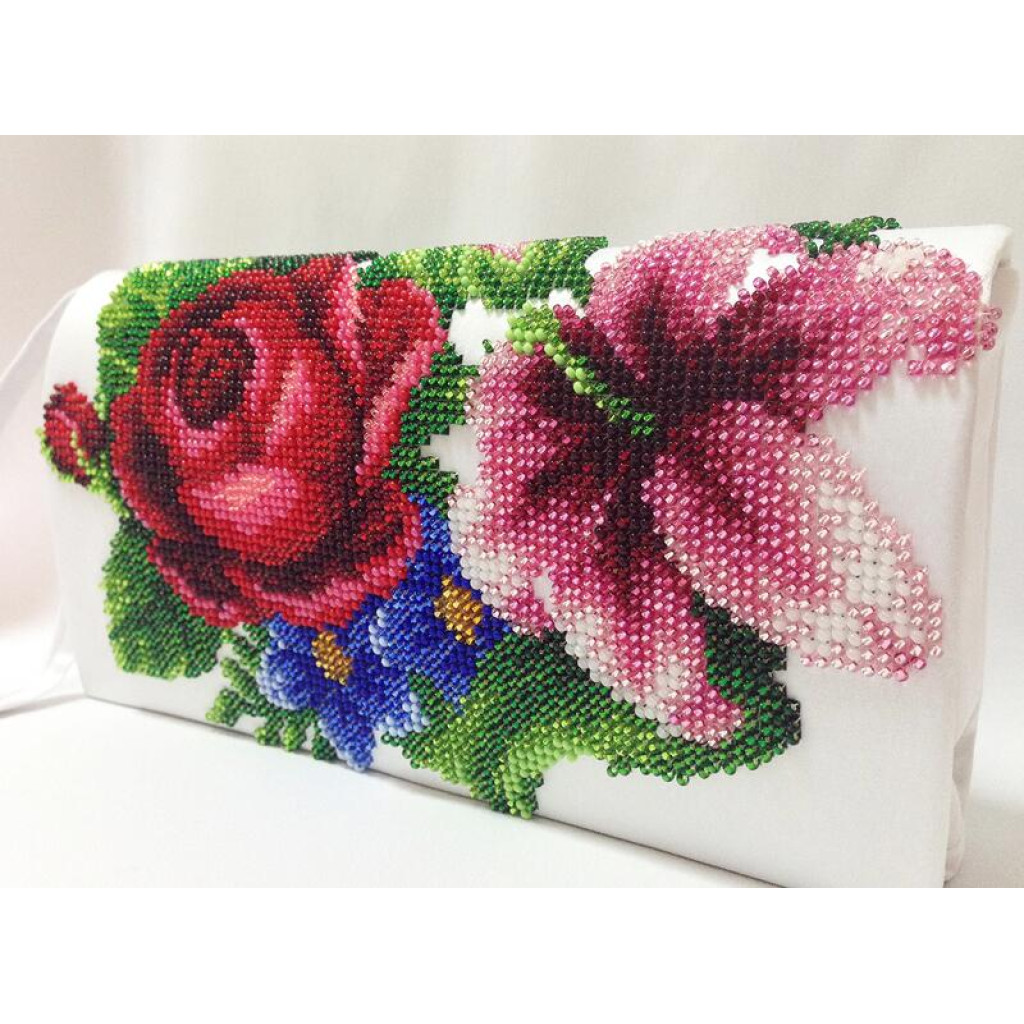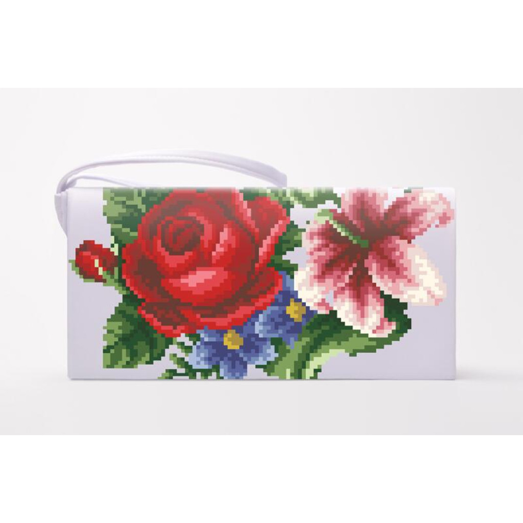 КЛ361шБ1301i Барвиста вишиванка Набір для вишивки друкованим хрестиком - Клатч Лілеї, троянди, незабудки 21x13 см шовк, білий