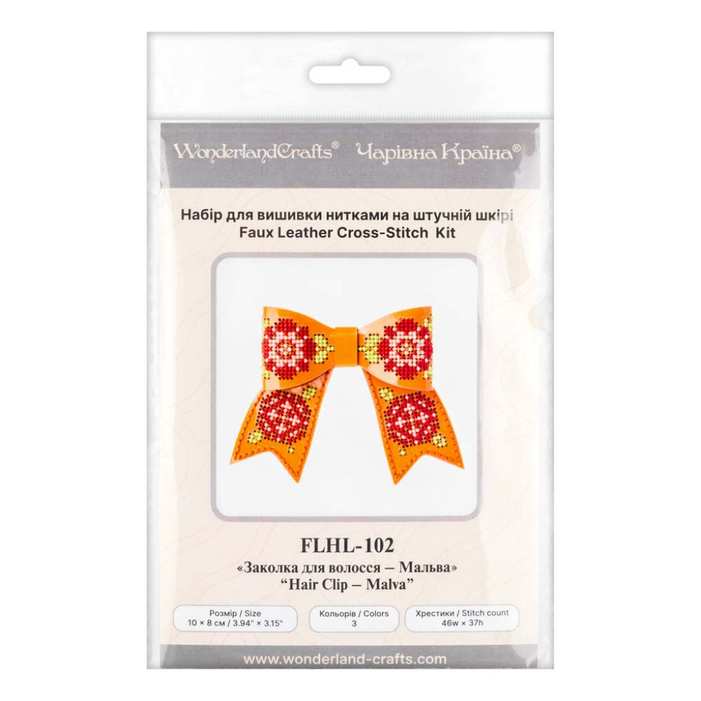 FLHL-102 Wonderland Crafts Набір для вишивки нитками на штучній шкірі Заколка для волосся – Мальва 8x10 см, помаранчевий