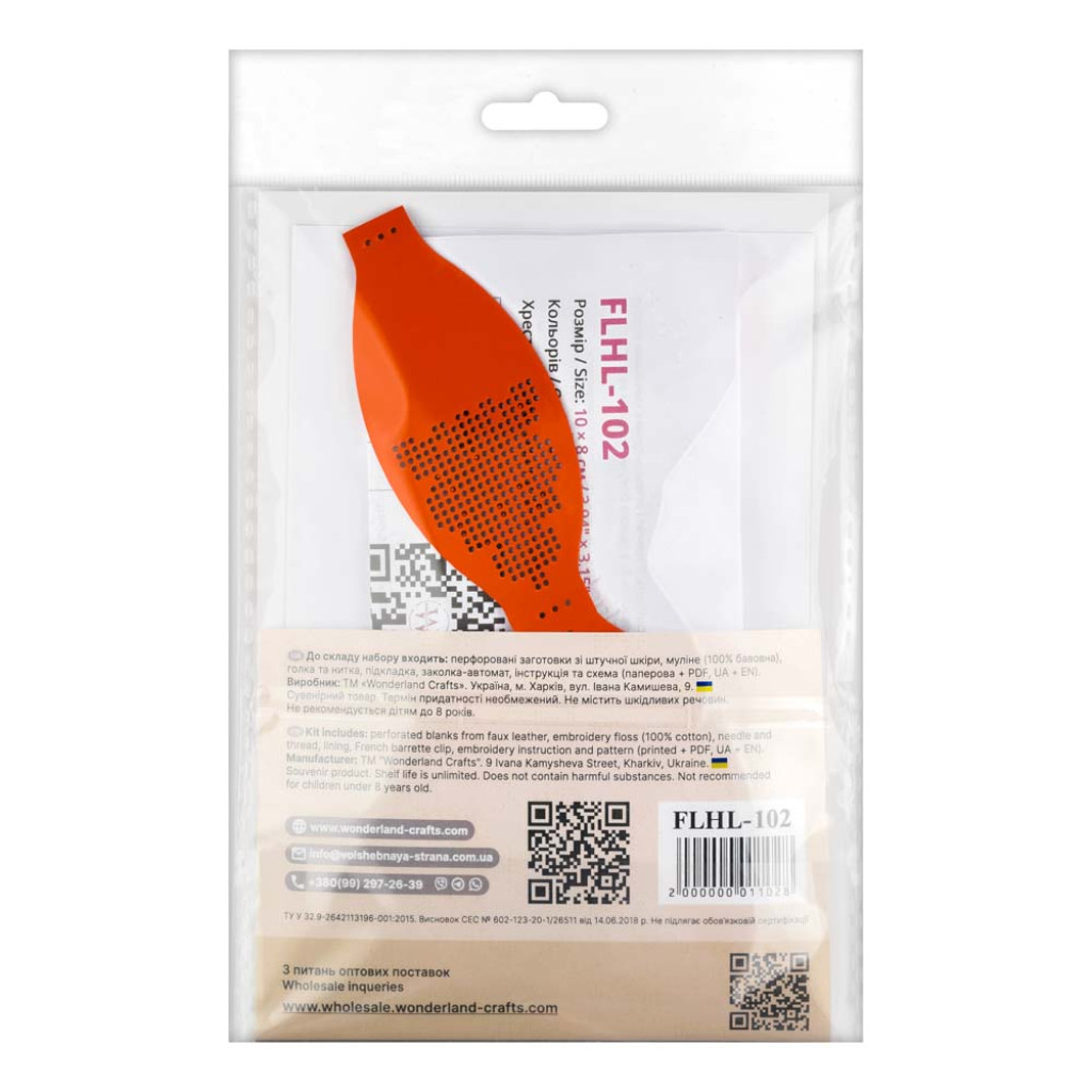 Комплект Wonderland Crafts допоможе створити оригінальну заколку для волосся на основі зі штучної шкіри. Вишивання виконується за друкованою кольоровою схемою, а також доступний PDF-файл, тому процес зручний і зрозумілий навіть для початківців.