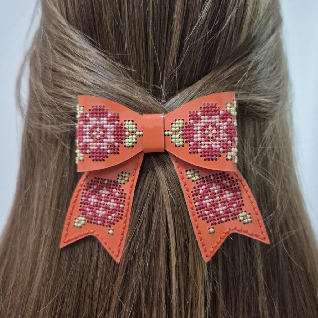 Штучна шкіра добре тримає форму, не обсипається по краях та забезпечує охайний вигляд готового аксесуара. Вишита заколка стане виразною деталлю образу, доповнить повсякденні та святкові зачіски, а також підійде для подарунка.