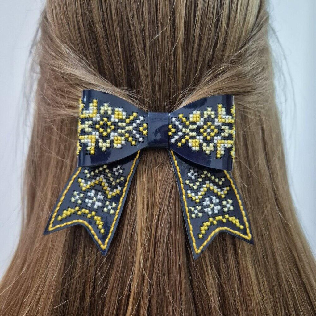 Штучна шкіра добре тримає форму, не обсипається по краях та забезпечує охайний вигляд готового аксесуара. Вишита заколка стане виразною деталлю образу, доповнить повсякденні та святкові зачіски, а також підійде для подарунка.