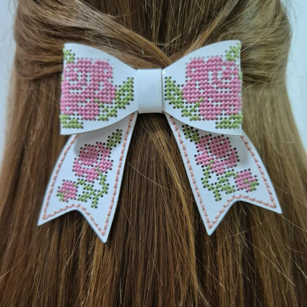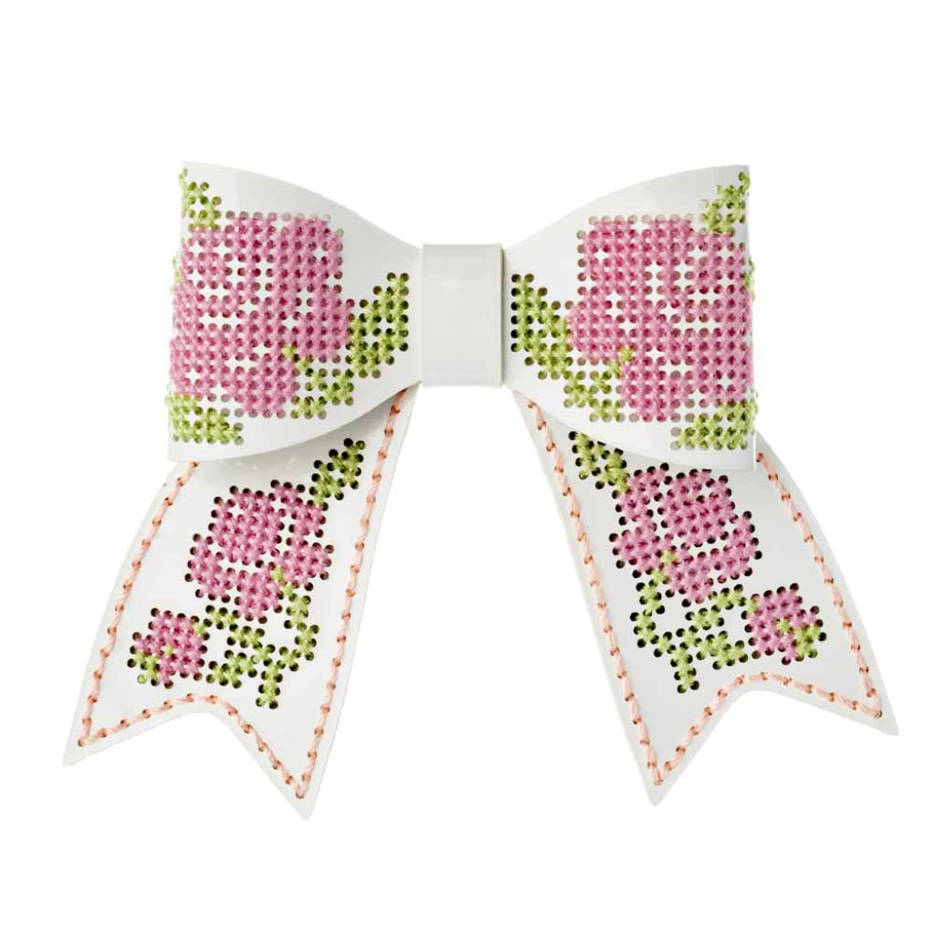 FLHL-105 Wonderland Crafts Набір для вишивки нитками на штучній шкірі Заколка для волосся – Троянда 8x10 см, білий