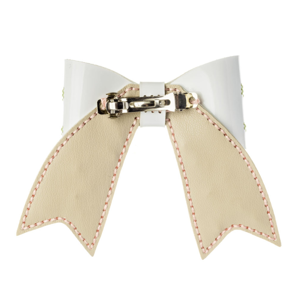 Штучна шкіра добре тримає форму, не обсипається по краях та забезпечує охайний вигляд готового аксесуара. Вишита заколка стане виразною деталлю образу, доповнить повсякденні та святкові зачіски, а також підійде для подарунка.