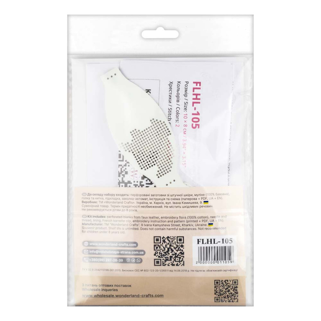 Комплект Wonderland Crafts допоможе створити оригінальну заколку для волосся на основі зі штучної шкіри. Вишивання виконується за друкованою кольоровою схемою, а також доступний PDF-файл, тому процес зручний і зрозумілий навіть для початківців.