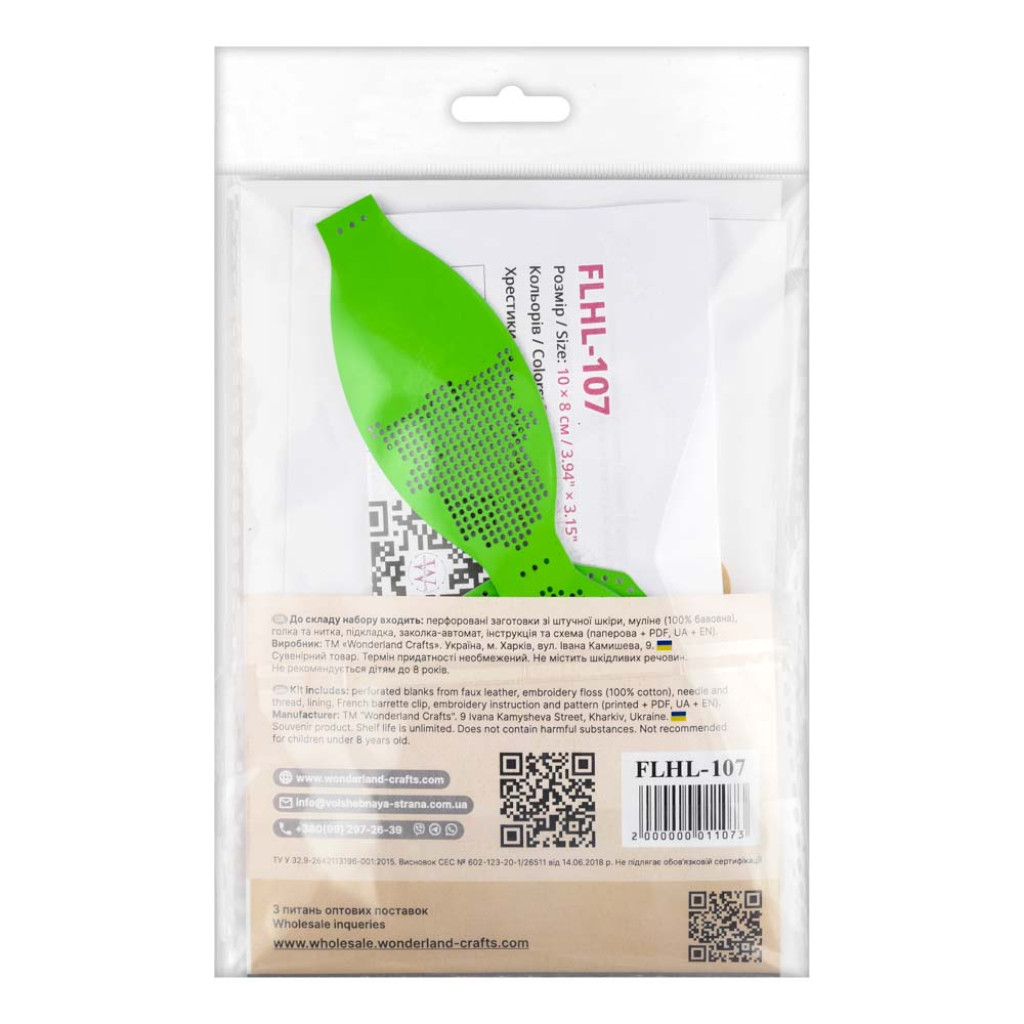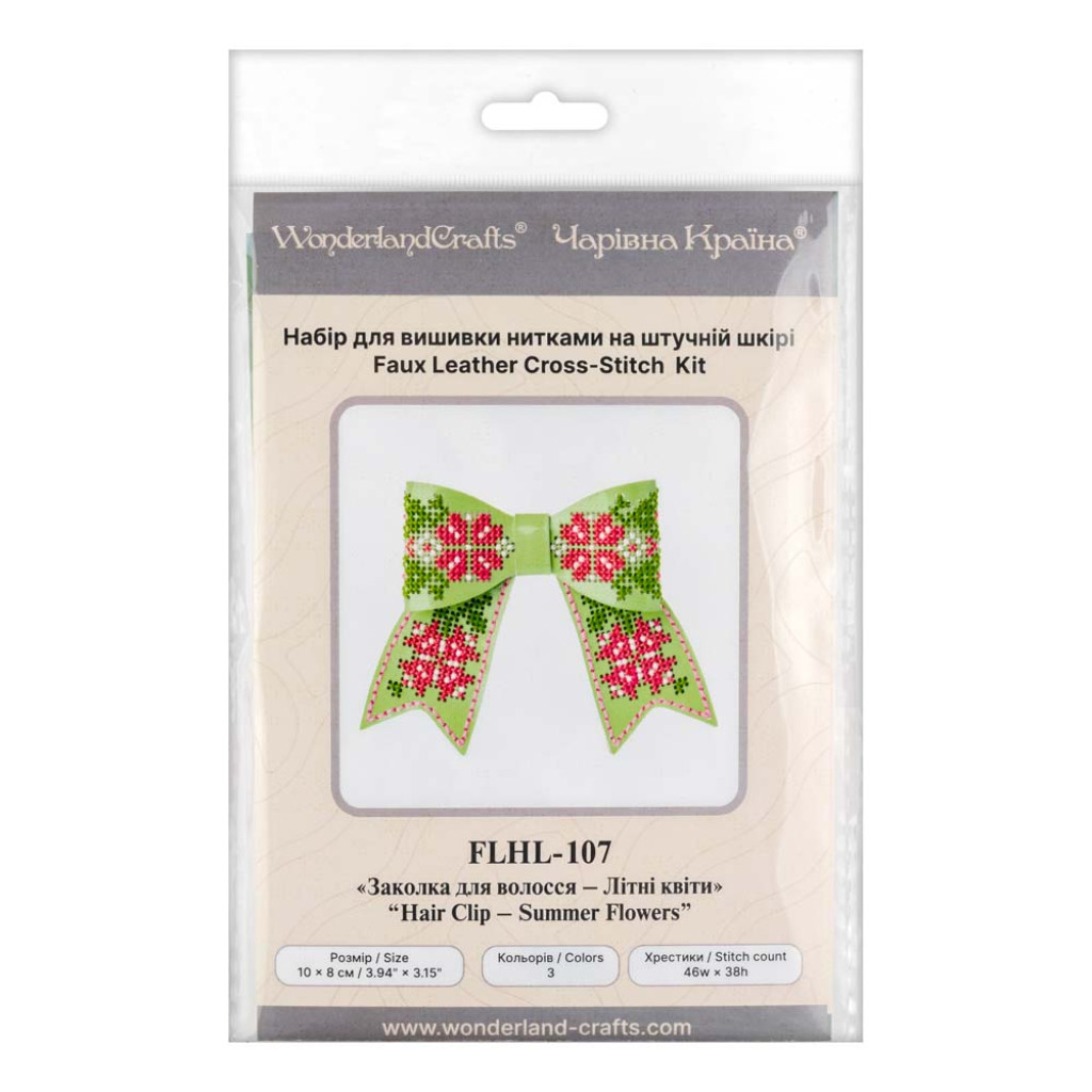 FLHL-107 Wonderland Crafts Набір для вишивки нитками на штучній шкірі Заколка для волосся – Літні квіти 8x10 см, зелений