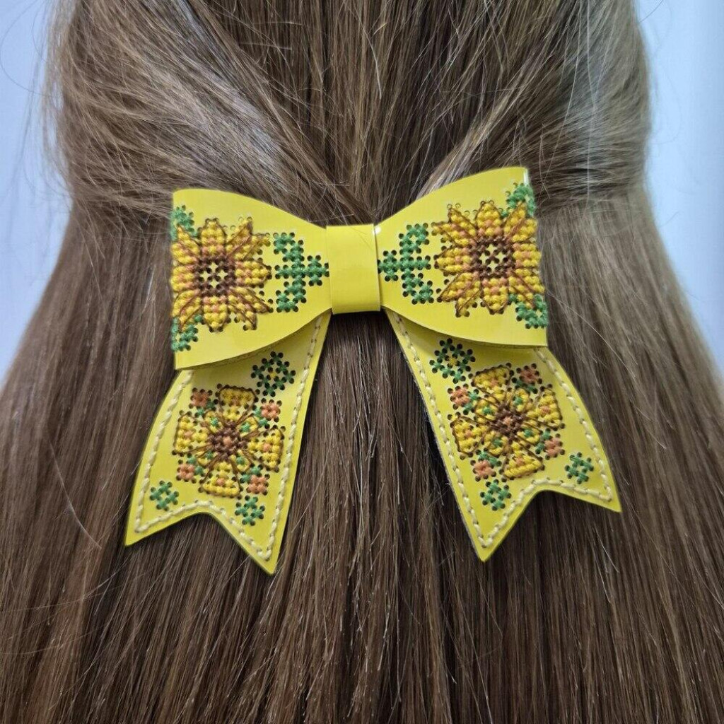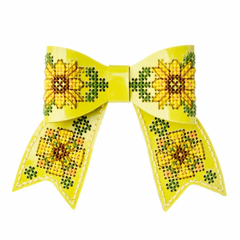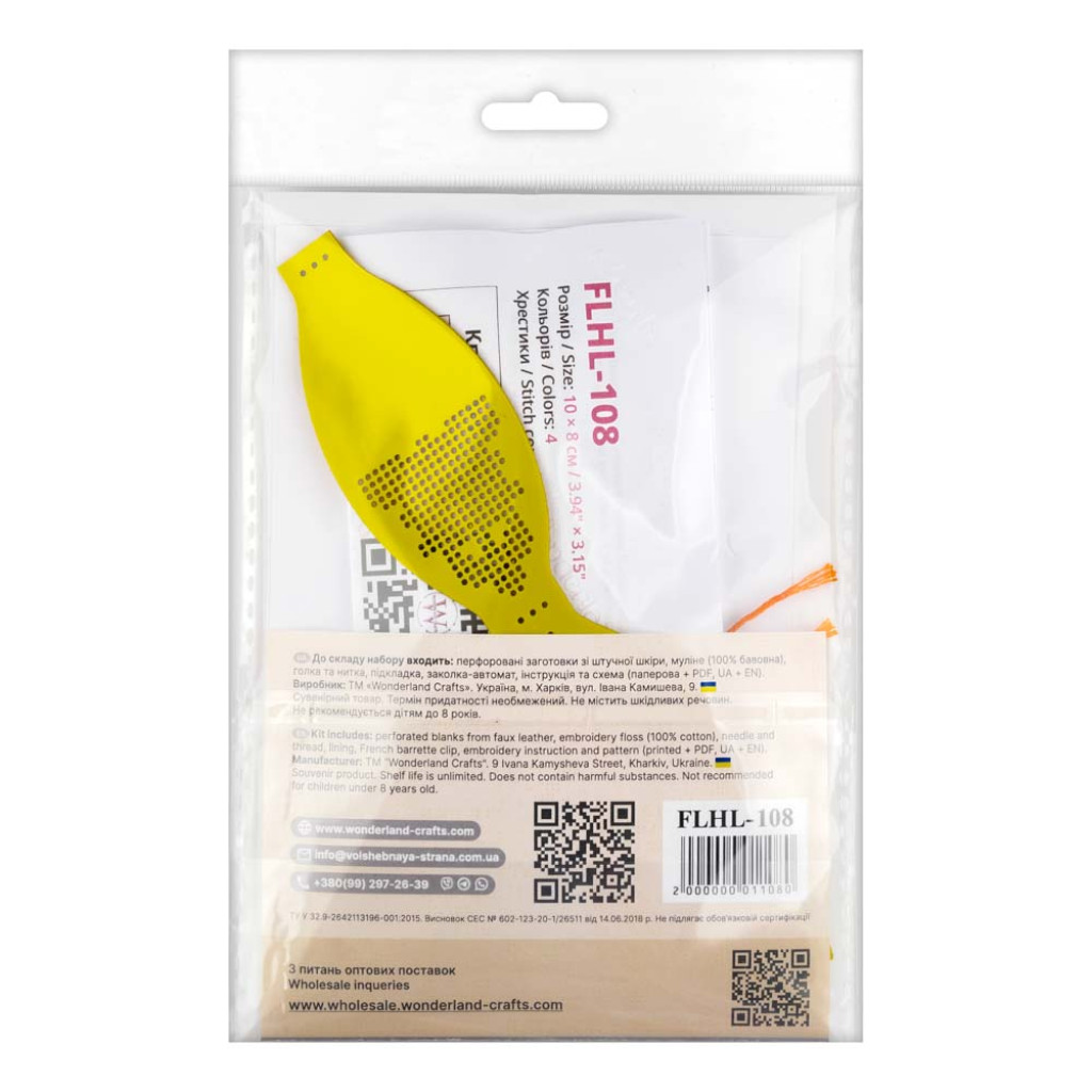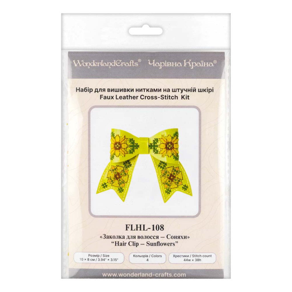 FLHL-108 Wonderland Crafts Набір для вишивки нитками на штучній шкірі Заколка для волосся – Соняхи 8x10 см, жовтий
