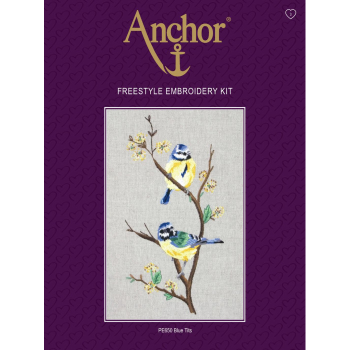 PE650 Anchor Набір для вишивки гладдю - Сині пташечки Blue Tits 36x17 см, рівномірка