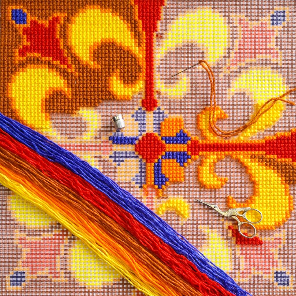 Усі необхідні матеріали вже входять до комплекту, що дозволяє одразу розпочати вишивку та створити декоративну подушку власноруч.