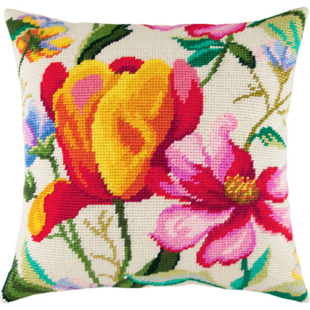 V118 Чарівниця Набір для вишивки друкованим напівхрестиком - Подушка Тюльпан аквареллю 40x40 см (схема на канві)