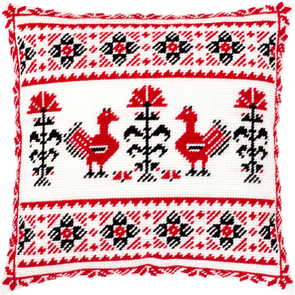 Готову вишивку можна оформити в декоративну подушку (потрібна зворотна частина наволочки) або використати як текстильний декор. Орнамент із птахами у традиційному стилі створює атмосферу затишку та гармонії в інтер’єрі.